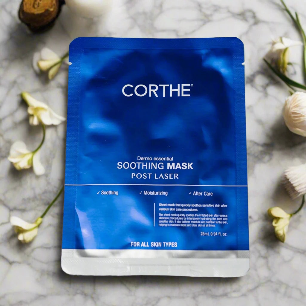 Specially formulated for post-laser treatments, Corthe Soothing Sheet Mask offers healing properties that hydrate, soothe, and accelerate skin cell regeneration. Designed to be calming and comforting, this mask leaves skin feeling replenished, hydrated, and happy. Ideal for any time skin needs extra care.