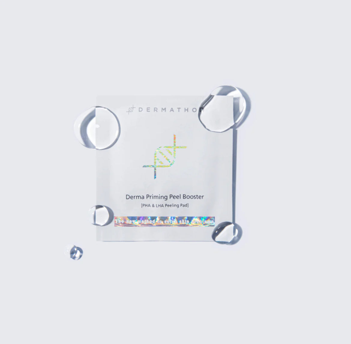 Dermathod Priming Peel Booster pads gently exfoliate with PHA + LHA, promoting collagen and unclogging pores. These slow releasing pads are effective for acne, fine lines, hyperpigmentation, and Keratosis Pilaris on the body. Use 2-3 times a week with Dermathod ampoules.