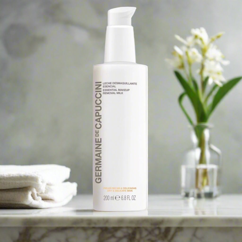 Expertly formulated for delicate skin, our Essential Makeup Remover Milk gently removes impurities and traces of makeup while hydrating, balancing, and preventing dryness. It deep cleanses with extreme gentleness, providing hydration and antioxidant benefits for fresh, clear, and healthy skin. Achieve a luminous, supple, and comfortable appearance.