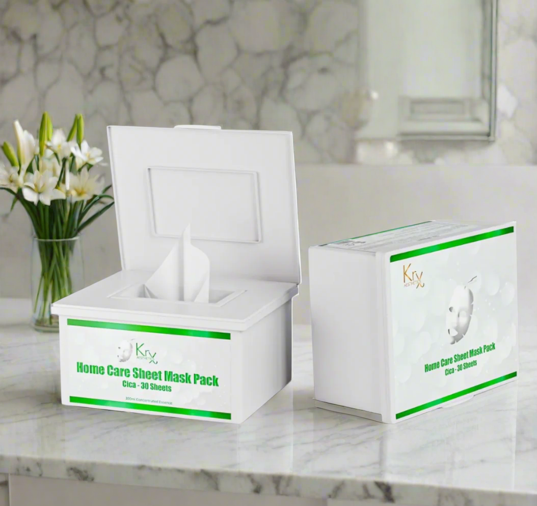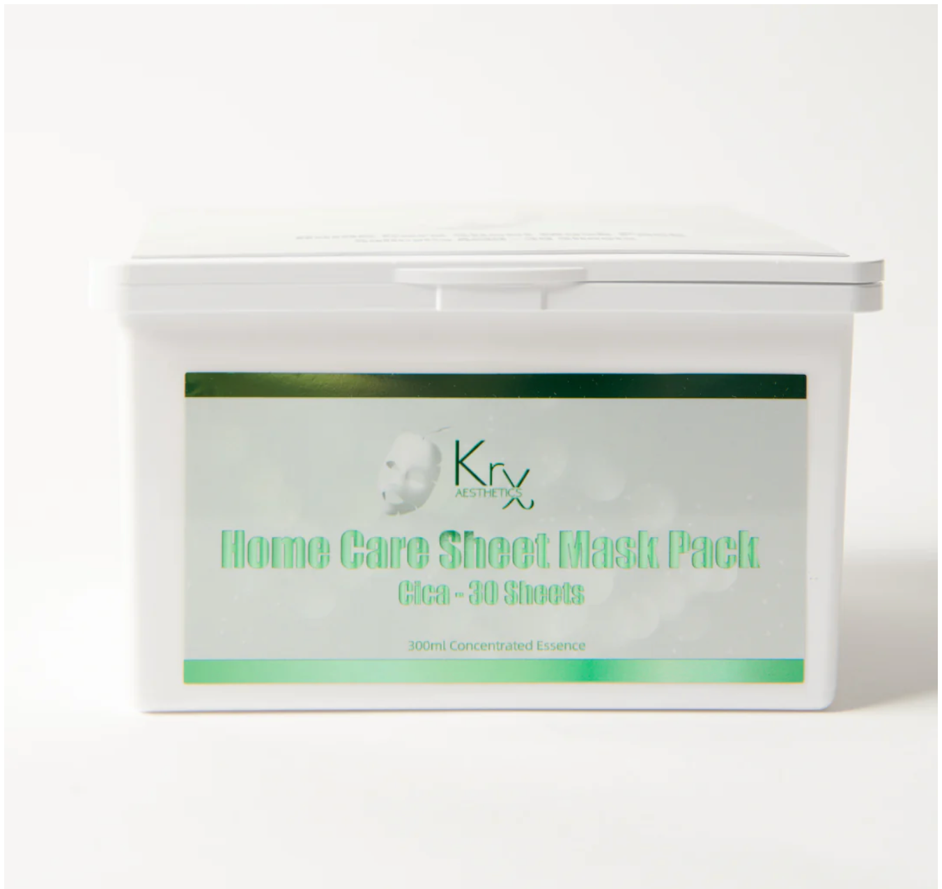 KRX Cica Home Care Masks contain concentrated Cica essence, known for its healing properties in traditional Korean medicine. Perfect for post-treatment use, these sheet masks provide anti-inflammatory benefits for the skin. Each pack contains 20 masks for retail or use in the treatment room.