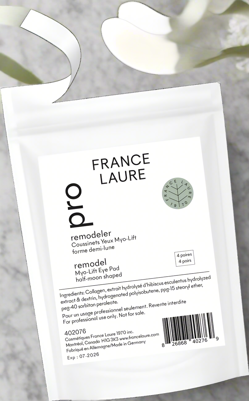 These Remodel Myo-Lift Eye Pad Half Moon Shape 4 Pairs are a high-performance professional treatment, with 97.9% pure native collagen peptides. Enriched with MyoxinolTM, a natural Botox® alternative, and collagen, these pads visibly relax expression lines like crow's feet. Compatible with eyelash extensions, they hydrate, regenerate, and protect against free radicals, making them an essential ally against aging. Perfect for all skin types.