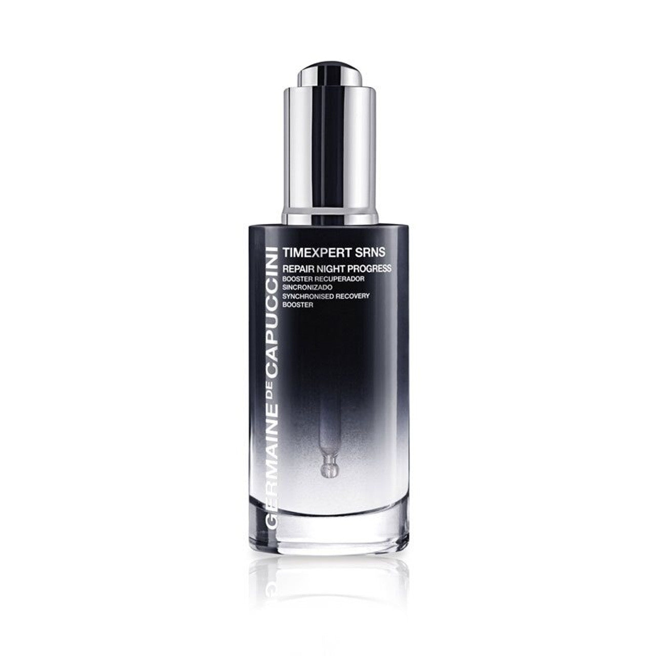The TIMEXPERT SRNS REPAIR NIGHT PROGRESS from Germaine de Capuccini is a revolutionary anti-aging serum that utilizes a new, innovative ingredient to multiply the power of absorption by 8(1). This results in deeper penetration and more visible results in just 7 days(2). With 22 synchronized ingredients, this serum effectively treats all signs of aging, including texture, suppleness, density, hydration, firmness, lines and wrinkles, luminosity, tone uniformity, clarity, and vitality. Experience smoother, firmer, and radiant skin with nightly use.