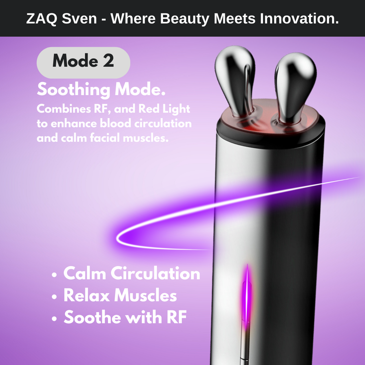 Unleash your radiance and embrace renewal with the ZAQ SVEN. This advanced skincare device utilizes RF technology for skin tightening and rejuvenation, Microcurrent technology for improved tone and contour, Red Light therapy for collagen production and fine line reduction, and 3D technology for enhanced absorption and massage effects. Experience the ultimate in beauty innovation with the ZAQ SVEN.